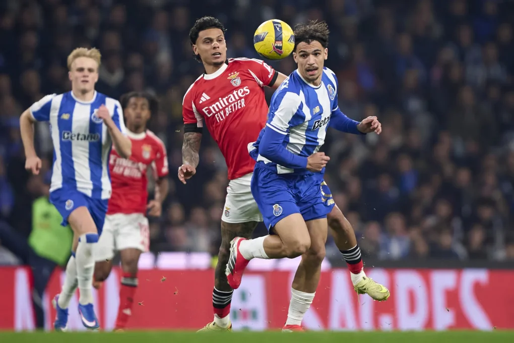 Com Prestianni e Sidny Cabral no onze inicial encarnado, José Mourinho optou por entrar em campo com uma formação titular à procura de espaços… que não existiram. O FC Porto viveu algumas dificuldades no início, mas conseguiu soltar-se da pressão inicial das águias para chegar ao golo estavam decorridos 15 minutos. Se Prestianni tinha atirado por cima da barra momentos antes, Jan Bednarek teve pontaria mais certeira. Gabri Veiga bateu o pontapé de canto e o polaco saltou mais alto do que todos para abrir o marcador.