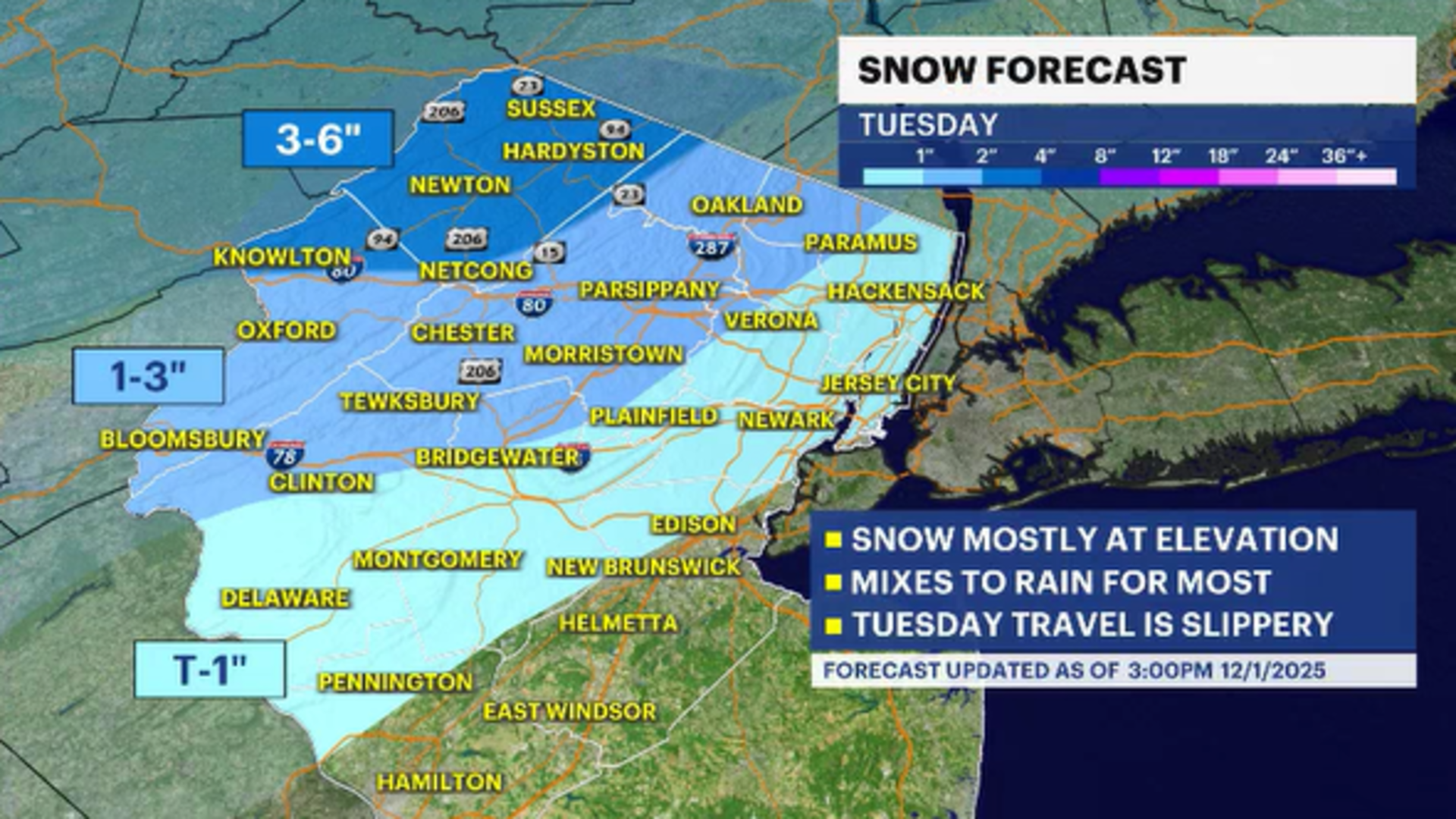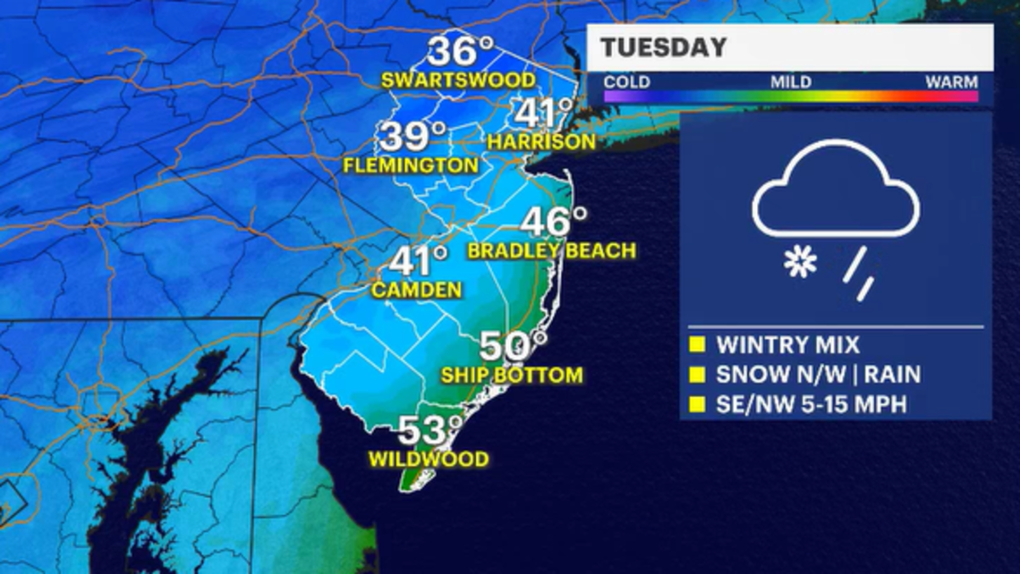 O calendário mudou para dezembro e, como que por acaso, o tempo torna-se muito invernal. Um robusto sistema de tempestades atravessa a região com uma série de condições climáticas que os residentes de Nova Jersey enfrentarão durante o deslocamento da manhã de terça-feira.