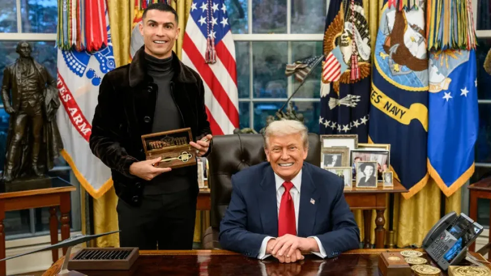 Antes da conversa privada na Sala Oval, já CR7 havia surgido muito sorridente ao lado de Donald Trump, no interior da Casa Branca, naquelas que foram as primeiras imagens divulgadas pela Casa Branca do encontro entre as duas personalidades de referência mundial.